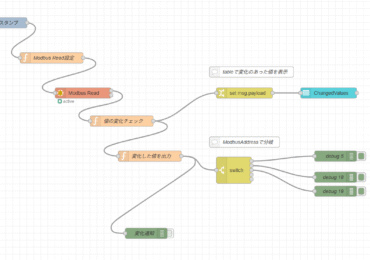 Modbus SlaveからInput(FC4)のデータを定期的に取得して変化があったらデバイスの制御をするフロー