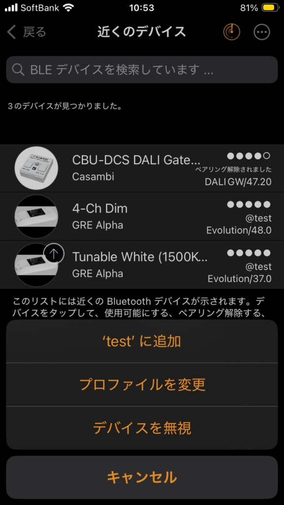 まず通常通りCasambiネットワーク上でCBU-DCSと照明器具をペアリングします。