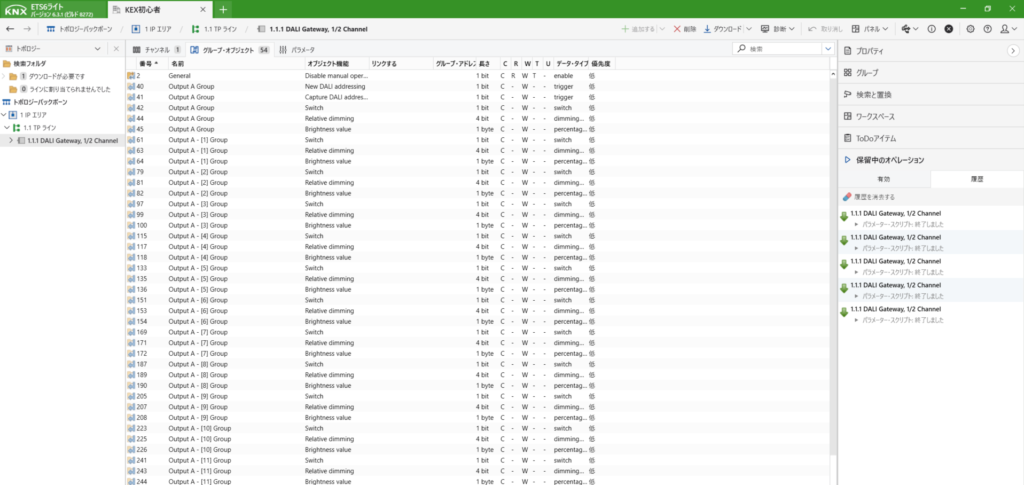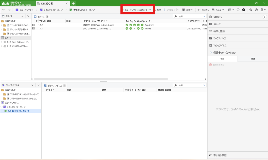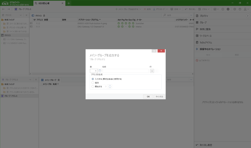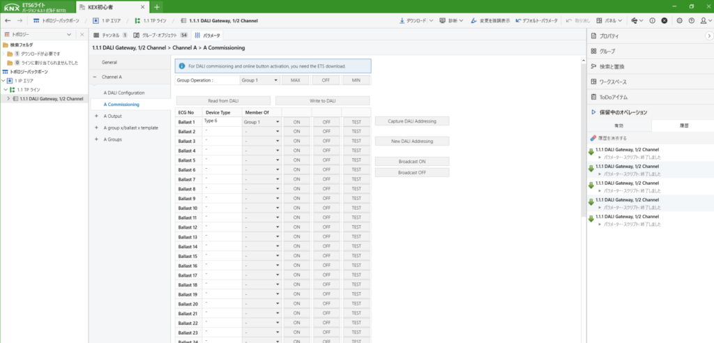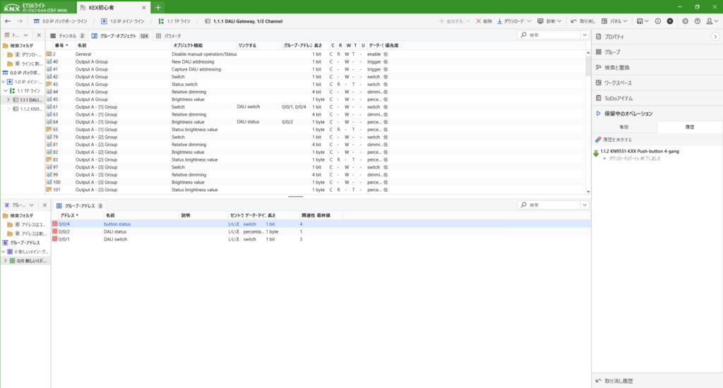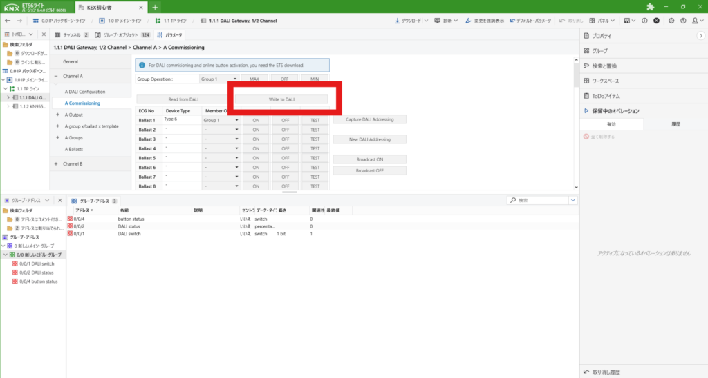 DALIのデバイス登録までできたら、次に動作させるためのアドレスを作成します。