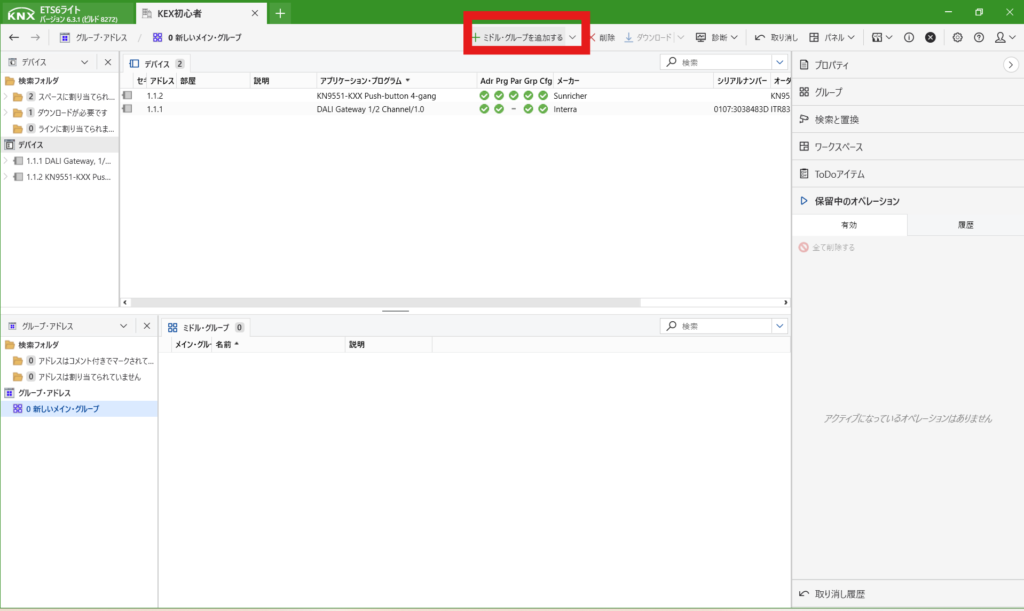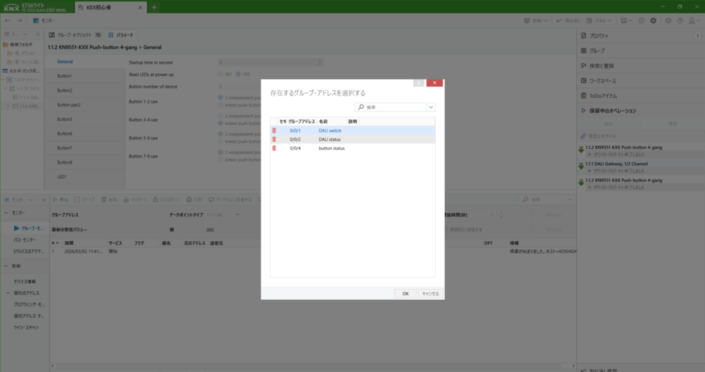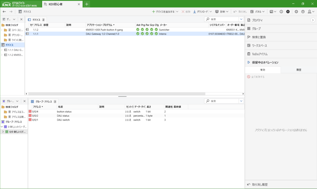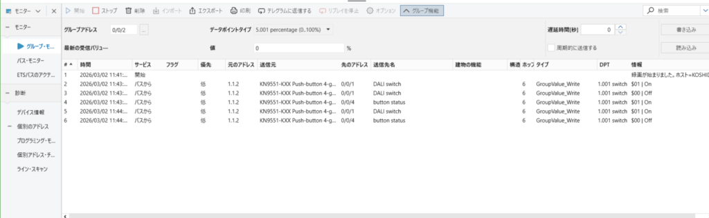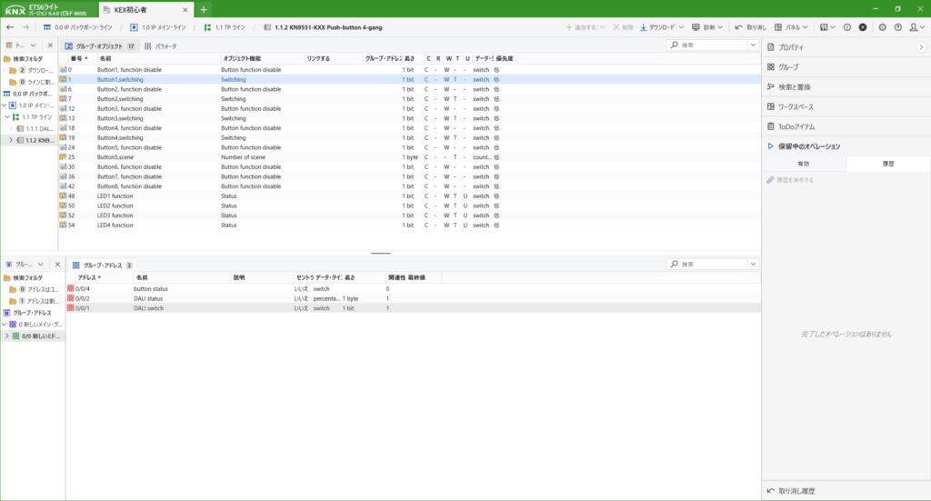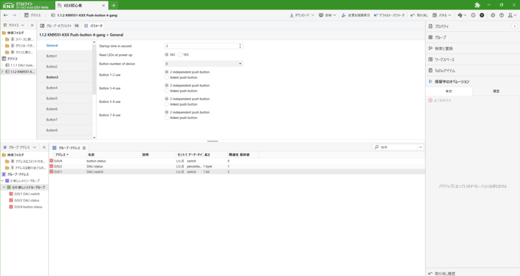 DALIのデバイス登録までできたら、次に動作させるためのアドレスを作成します。