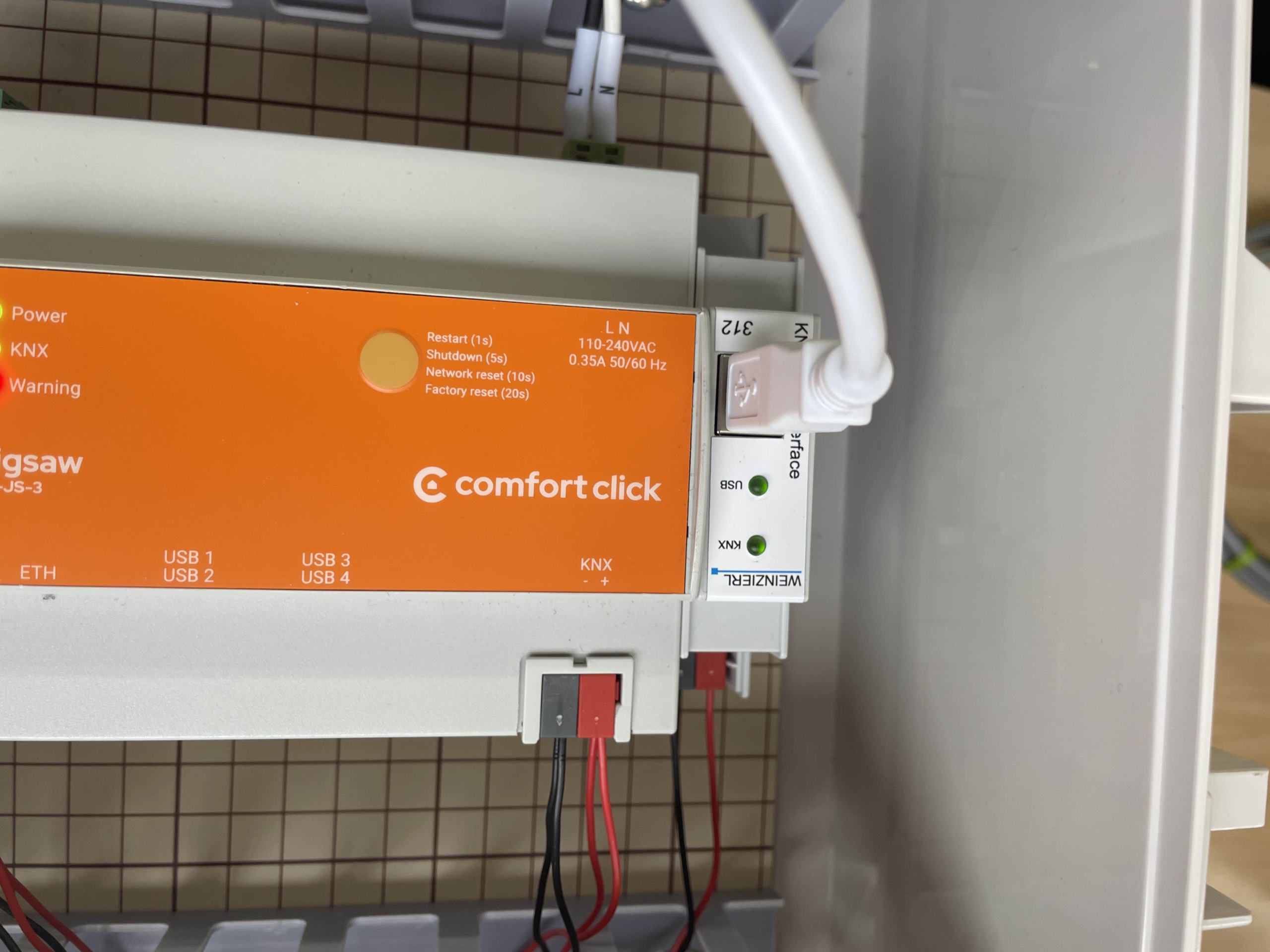 まずは一番右にあるKNX USB interfaceとPCを接続します。