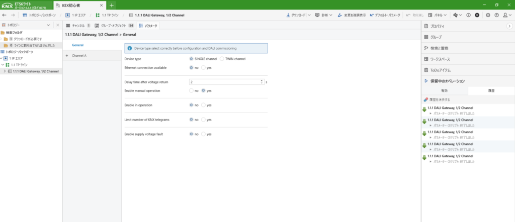 ここまでできましたら、次にDALIの紐づけをします。