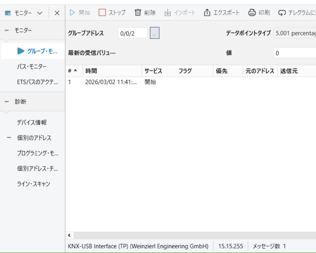 ではDALI statusは何かというと、モニターを開き開始を選択します。