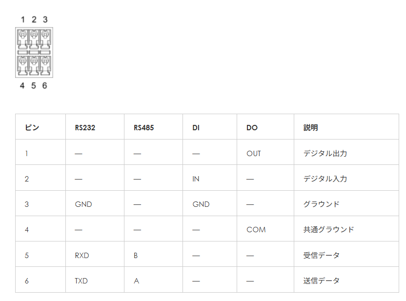 Milesight UR35のピン定義は以下のようになります。