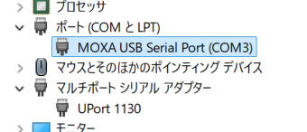 インストールが終わると、デバイスマネージェーでUport1130の設定ができるようになります。