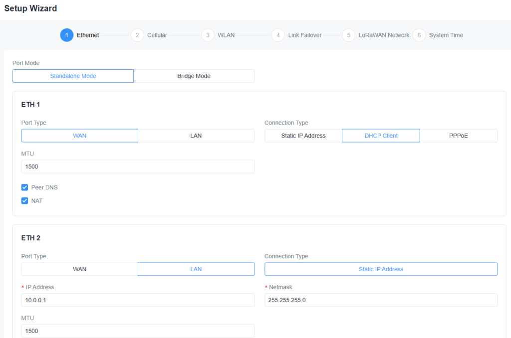 EG71はPoE給電可能なので、ETH1にPoE接続し社内のネットワークに接続します。
