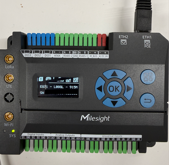 これまでは、照明や空調などに接続するには、別途、インターフェースが必要ですが、Milesight社から新しく「Building IoT Gateway EG71」という製品が発売され、これにKNX、BACnet、ModbusやRS-485、DigitalやAnalogのインターフェースなどが一体化されており、今後の弊社のソリューション用のデバイスとして組み込めそうです。