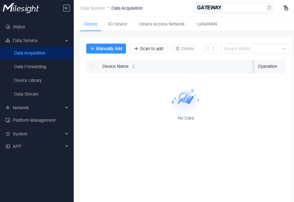 Data Service > Data Acqusition から、Manually Addを押す。