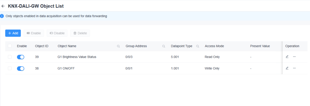 Milesightの担当に確認したところ、WebGUIから操作や状態取得ができるとのことなのですが、見当たりません。また、G1 Brightness Value StatusのPresent Valueも更新されません。